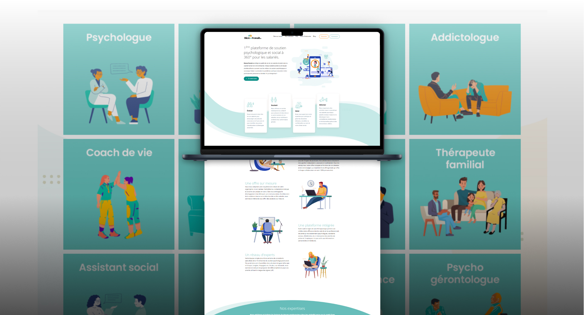 Plateforme de soutien psychologique et social à 360° pour les salariés, BienauTravail.io protège la qualité de vie des salariés et prend soin du capital humain des entreprises. Chaque salarié accède à une équipe pluridisciplinaire couvrant tous les métiers du soutien psychologique et social pour les aider à surmonter les problèmes qu’ils peuvent rencontrer à titre professionnel, personnel ou familial.